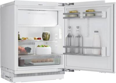 Onderbouw-koelkast, Integreerbaar, Vaste deur montage, 101 l Inhoud koelgedeelte, 14 l Inhoud vriesgedeelte, Superkoelen, 2 Glasplateaus, 1 Groentelade(n), LED verlichting, Digitale temperatuurweergave, Energieklasse C, netto breedte: 59,7 cm, netto hoogte: 85,9 cm, netto diepte: 55 cm