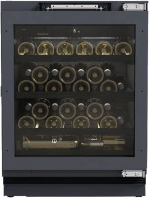 Inbouw wijnkoelkast, Thermostaat kast, Geschikt voor onderbouw, 107 l Inhoud, Temperatuurzones: 1, regelbare koelcircuits: 1, Digitale temperatuurweergave, legvlakken: 4, 4, Binnenverlichting, LED, Schakelbaar, Dimbaar, Glazen deur, Smart Device geintegreerd, Via app ondersteunde gegevensoverdracht, Via app te bedienen, Energieklasse F, netto breedte: 59,7 cm, netto hoogte: 81,9 cm, netto diepte: 53,6 cm