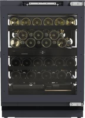 Inbouw wijnkoelkast, Thermostaat kast, Geschikt voor onderbouw, 101 l Inhoud, Temperatuurzones: 2, regelbare koelcircuits: 2, Digitale temperatuurweergave, legvlakken: 5, 4, Binnenverlichting, LED, Schakelbaar, Dimbaar, Glazen deur, Smart Device geintegreerd, Via app ondersteunde gegevensoverdracht, Via app te bedienen, Energieklasse F