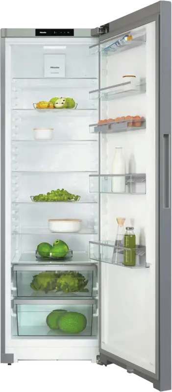 Koelkast vrijstaand, Zonder vriesvak, 399 l Inhoud koelgedeelte, Superkoelen, 2, 7 Glasplateaus, ComfortClean, LED verlichting, Display, Touch-functie, Digitale temperatuurweergave, SabbatMode, Miele@home (voorbereid voor thuisnetwerk), Via app ondersteunde gegevensoverdracht, Via app te bedienen, compatible met Amazon Alexa, Energieklasse D, netto breedte: 59,7 cm, netto hoogte: 185,5 cm, netto diepte: 67,5 cm