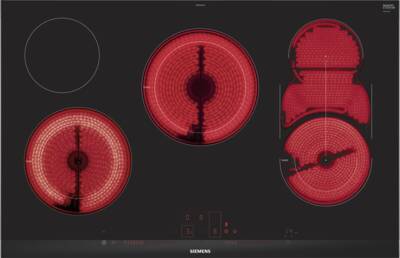 Glaskeramische kookplaat, Bediening voorzijde, 4 Keramische kookzone(s), tweekrings-kookzones: 3, Combinatiezones: 1, bruikbaar als twee aparte of één grote kookzone, 17 Standen, Snel verwarmen, Warmhoudfunctie, Veeg beveiliging, ReStart, Facet geslepen, netto breedte: 81,2 cm, netto hoogte: 4,5 cm, netto diepte: 52 cm