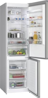 Koel-/vriescombinatie, 260 l Inhoud koelgedeelte, Superkoelen, MultiAirflow, Flessenplateau/rek (liggend), 1, 5 Glasplateaus, 1 Groentelade(n), LED verlichting, 103 l Inhoud vriesgedeelte, 3 Lade, NoFrost, LED temperatuurweergave, Energieklasse B, netto breedte: 60 cm, netto hoogte: 203 cm, netto diepte: 66,5 cm