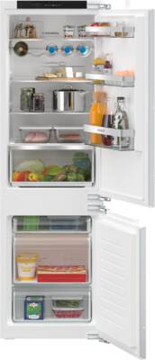 Inbouw-koel-/vrieskombinatie, Vaste deur montage, 183 l Inhoud koelgedeelte, waarvan HyperFresh, Flessenplateau/rek (liggend), 4 Glasplateaus, 84 l Inhoud vriesgedeelte, 2 Lade, BigBox [XXL]:1, Energieklasse E, netto breedte: 54,1 cm, netto hoogte: 177,2 cm, netto diepte: 54,8 cm