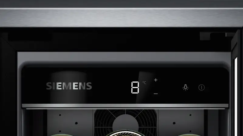 Inbouw wijnkoelkast, 58 l Inhoud, Temperatuurzones: 1, legvlakken: 1, 3 Houten legplateaus, Binnenverlichting, LED, Schakelbaar, Glazen deur, Energieklasse F, netto breedte: 29,8 cm, netto hoogte: 81,8 cm, netto diepte: 56,7 cm