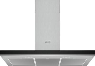 Schouwkap, Afvoer, Om te bouwen naar / geschikt voor recirculatie, 3 Standen, Intensief stand, met automatische terugschakeling, Nallooptijd, 6 Minuten, maximale luchtafvoer: 604 m³/h, maximale luchtrecirculatie: 441 m³/h, Touch Control bediening, LED verlichting, aantal lampen: 2, Aluminium vetfilter, Geschikt voor vaatwasser, Energieklasse B, netto breedte: 90 cm, hoogte: 63,5-107,5 cm, netto diepte: 50 cm