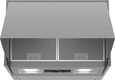 Integreerbare afzuigkap, Afvoer, Recirculatie, 3 Standen, maximale luchtafvoer: 360 m³/h, maximale luchtrecirculatie: 250 m³/h, Druktoetsbediening, LED verlichting, aantal lampen: 2, Metaal vetfilter, Geschikt voor vaatwasser, Energieklasse D, netto breedte: 59,9 cm, hoogte: 40,2-60 cm, netto diepte: 27,1 cm