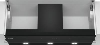 Schouwkap, Afvoer, Om te bouwen naar / geschikt voor recirculatie, 3 Standen, Intensief stand, met automatische terugschakeling, maximale luchtafvoer: 749 m³/h, maximale luchtrecirculatie: 651 m³/h, Touch Control bediening, LED verlichting, aantal lampen: 3, Metaal vetfilter, Geschikt voor vaatwasser, Energieklasse B, netto breedte: 89,7 cm, netto hoogte: 34 cm, netto diepte: 29,8 cm