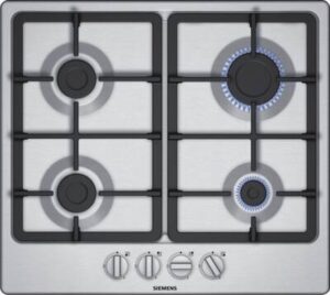 Gaskookplaat, Bediening voorzijde, Draaiknopbediening, Verlicht, 4 Kookzones, 1 Gas-sudderbrander, 2 Gas normaalbrander, 1 Gas sterkbrander, 9 Standen, Om te bouwen naar butagas, netto breedte: 58,2 cm, netto hoogte: 4,5 cm, netto diepte: 52 cm